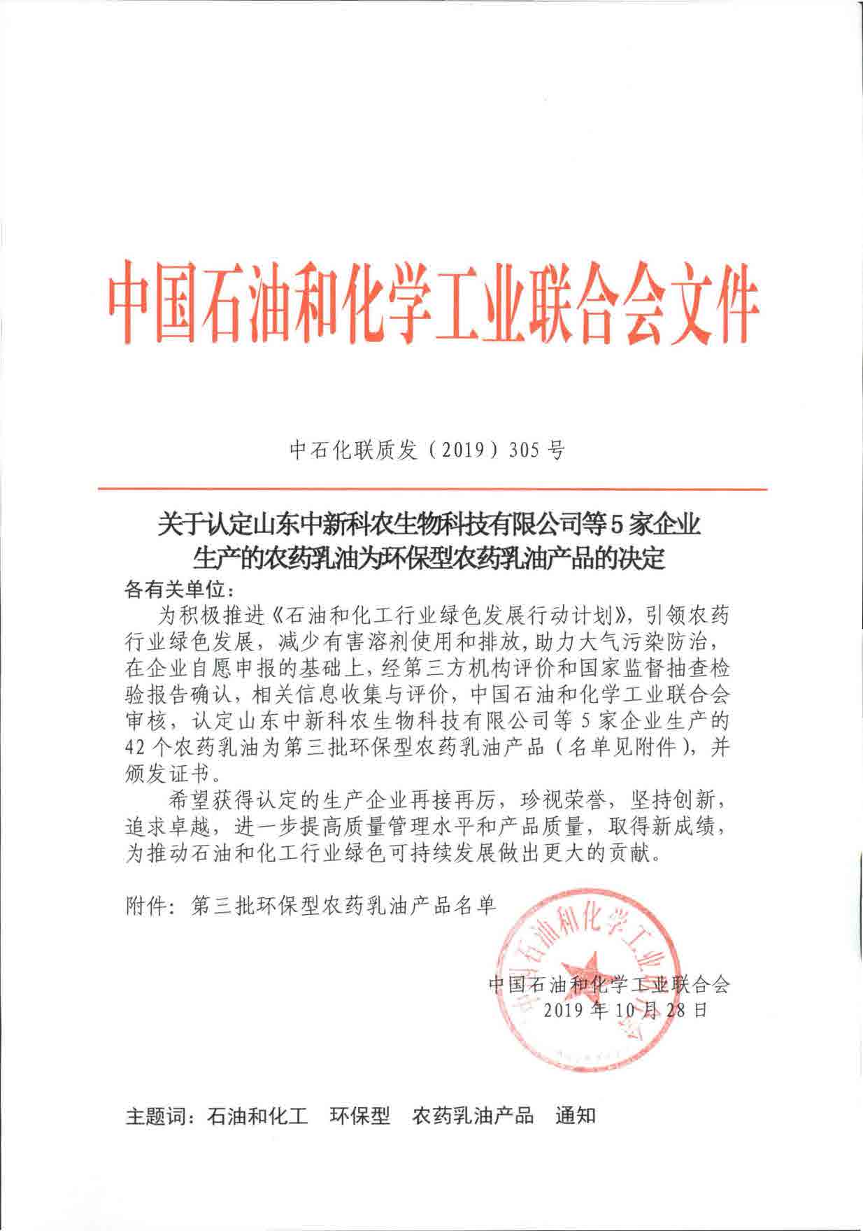 关于我司生产的农业乳油为环保型农业乳油产品的决定