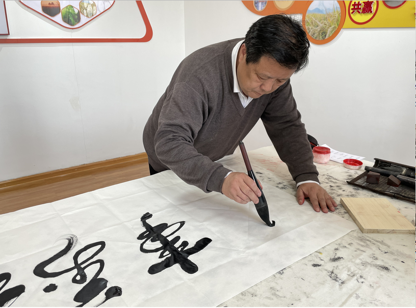 任院长非常认可我公司企业的管理和企业文化,现场挥毫泼墨,鼓励我公司继续“务本道生”,坚持“凝心聚力,务实笃行”,为乡村振兴做好服务。