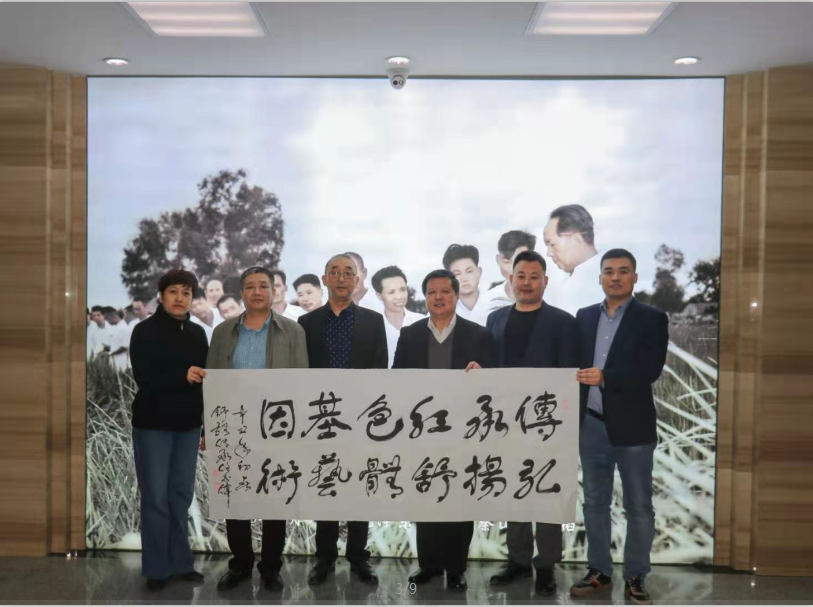 3月24日,在建党100周年来临之际,舒体传承人任志伟院长,原中国人民解放军军事科学院副院长舒同身边警卫员邱新波同志及工作人员吕光和同志走进中新科农开展送书法进企业活动。