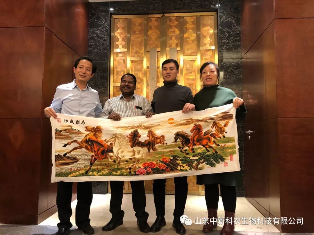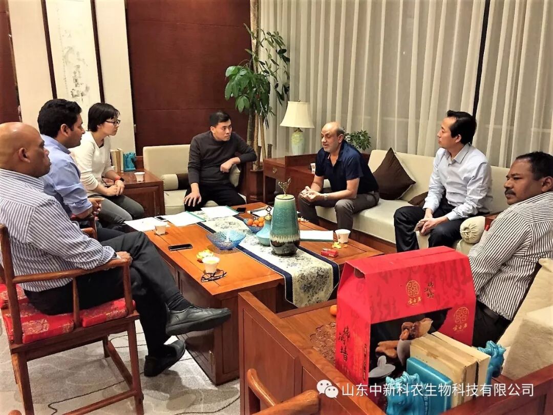 2018年3月4日,山东中新科农生物科技有限公司高层领导与印度科门德国际有限公司高层领导在济南鲁能贵和洲际酒店召开会议,会上讨论了代森锰锌产品在中国的市场规划、讨论并达成了更深一步海外战略合作意向。出席本次会议的人员主要有山东中新科农生物科技有限公司的董事长张全,股东刘爱芳,总经理王世辉以及印度科门德国际有限公司的总裁S.Srikantan和中国区销售总监Surender Sharma。